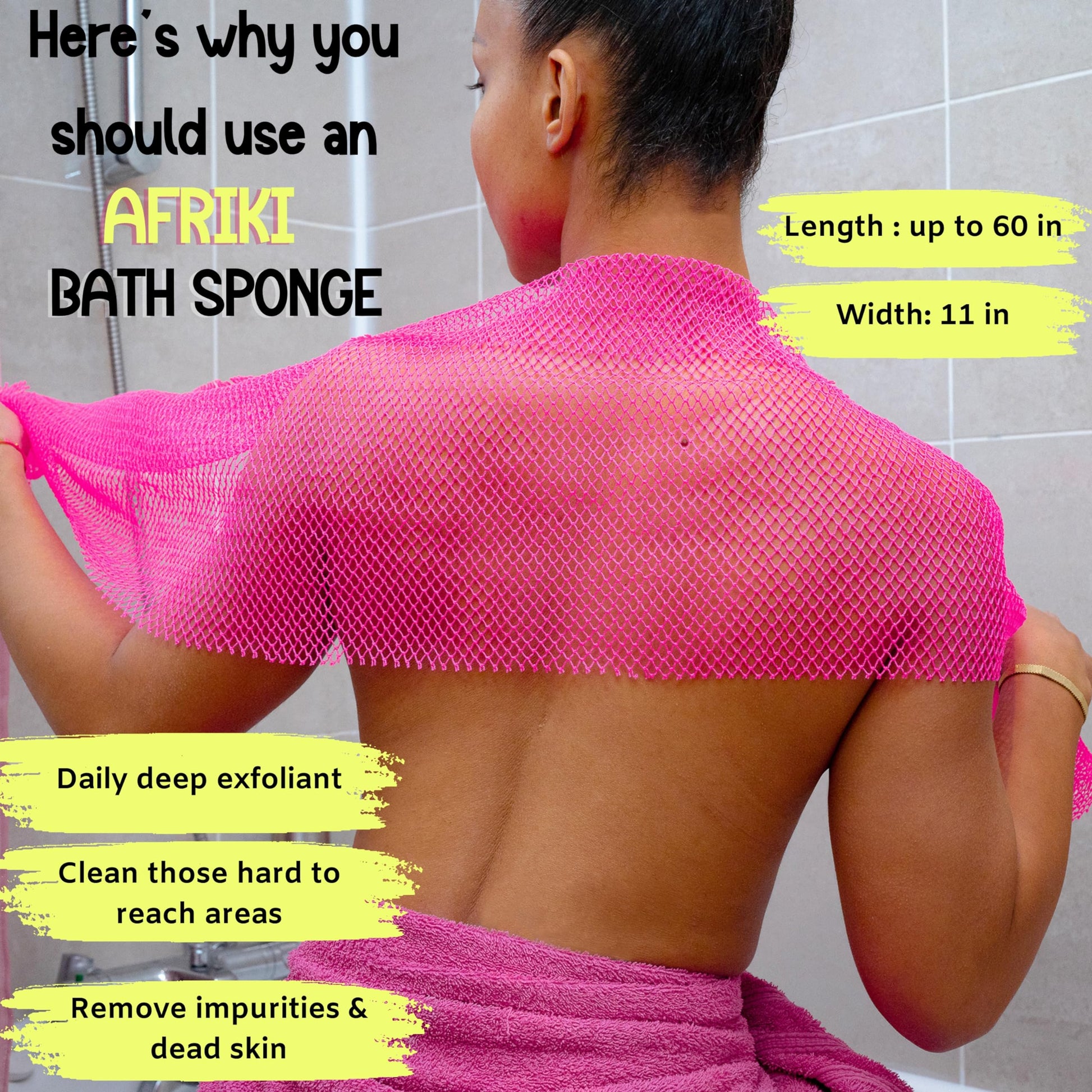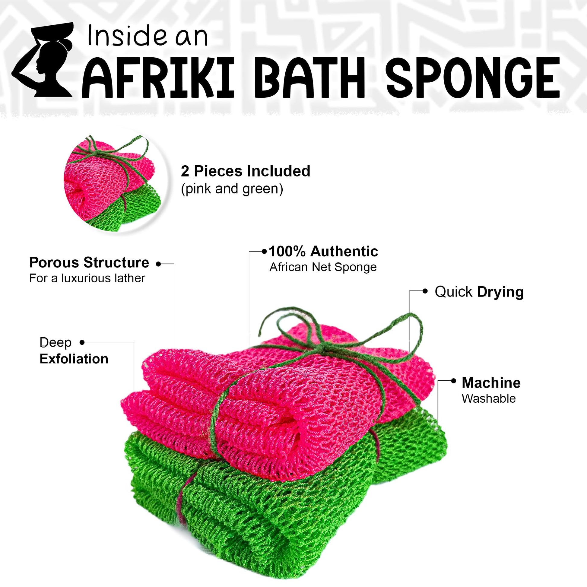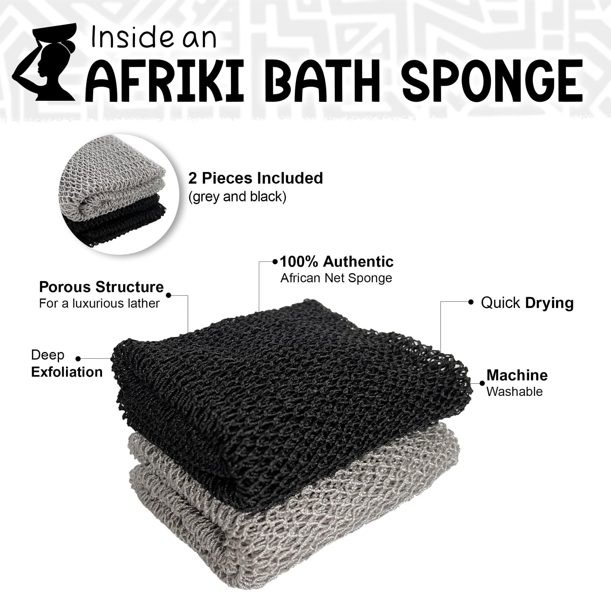 - 100% AFRICAN NET SPONGE : Step into the heart of Africa's skincare ritual with AFRIKI - African net sponge. Crafted from safe and skin-friendly nylon, this body sponge for shower will transform your daily routine into an invigorating exfoliation experience. And here's the best part, its machine washable!