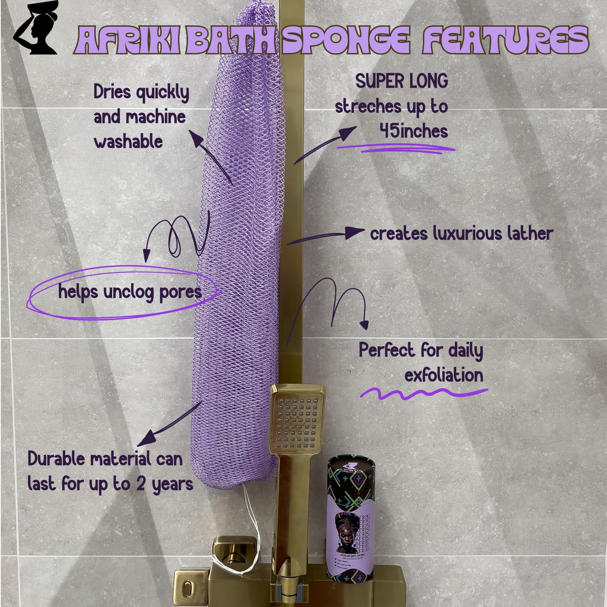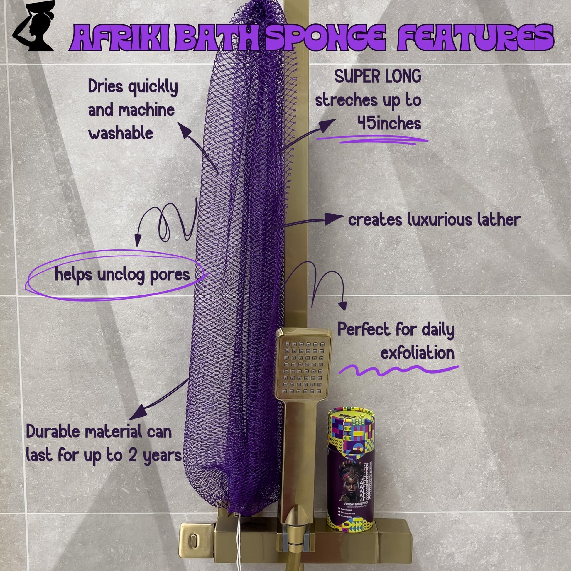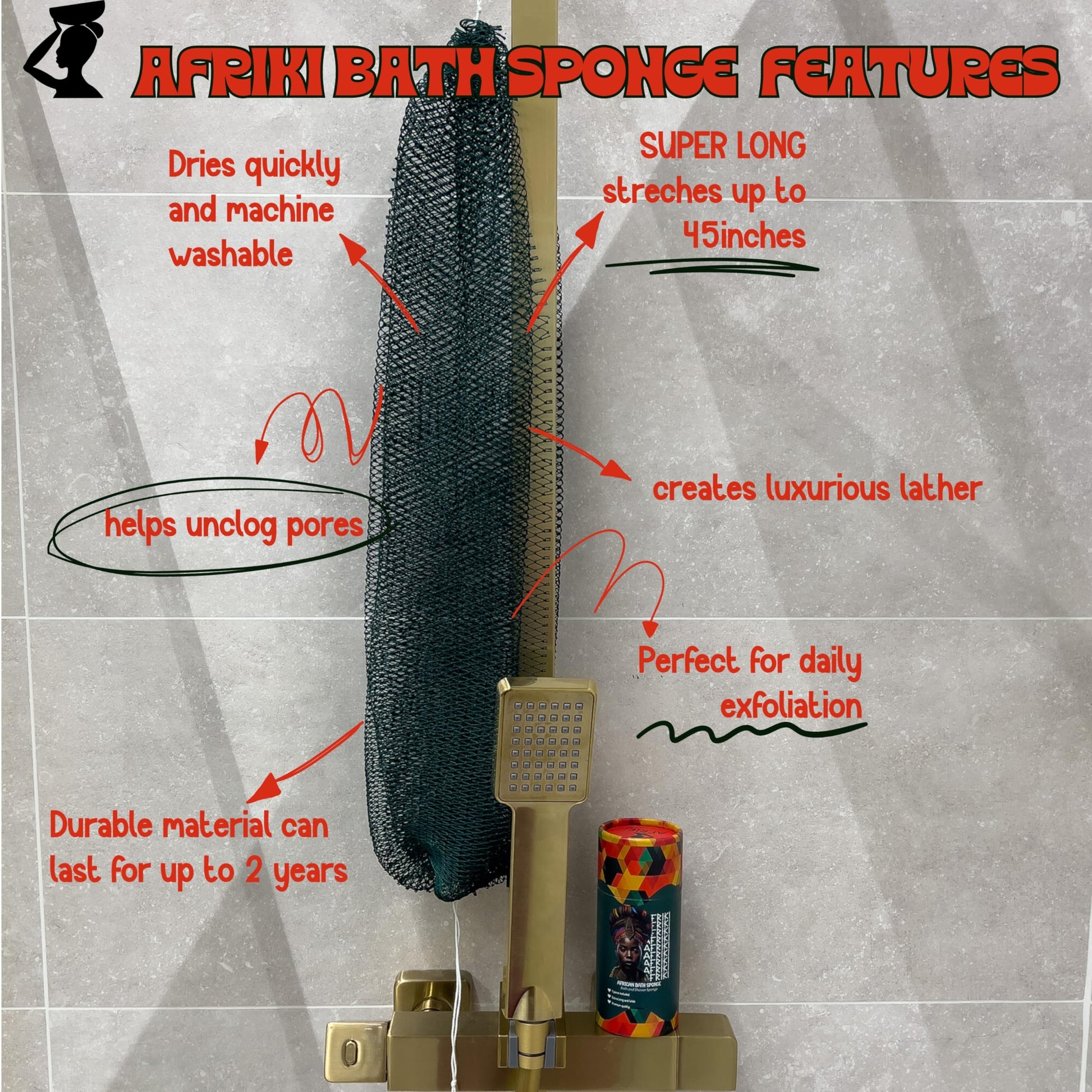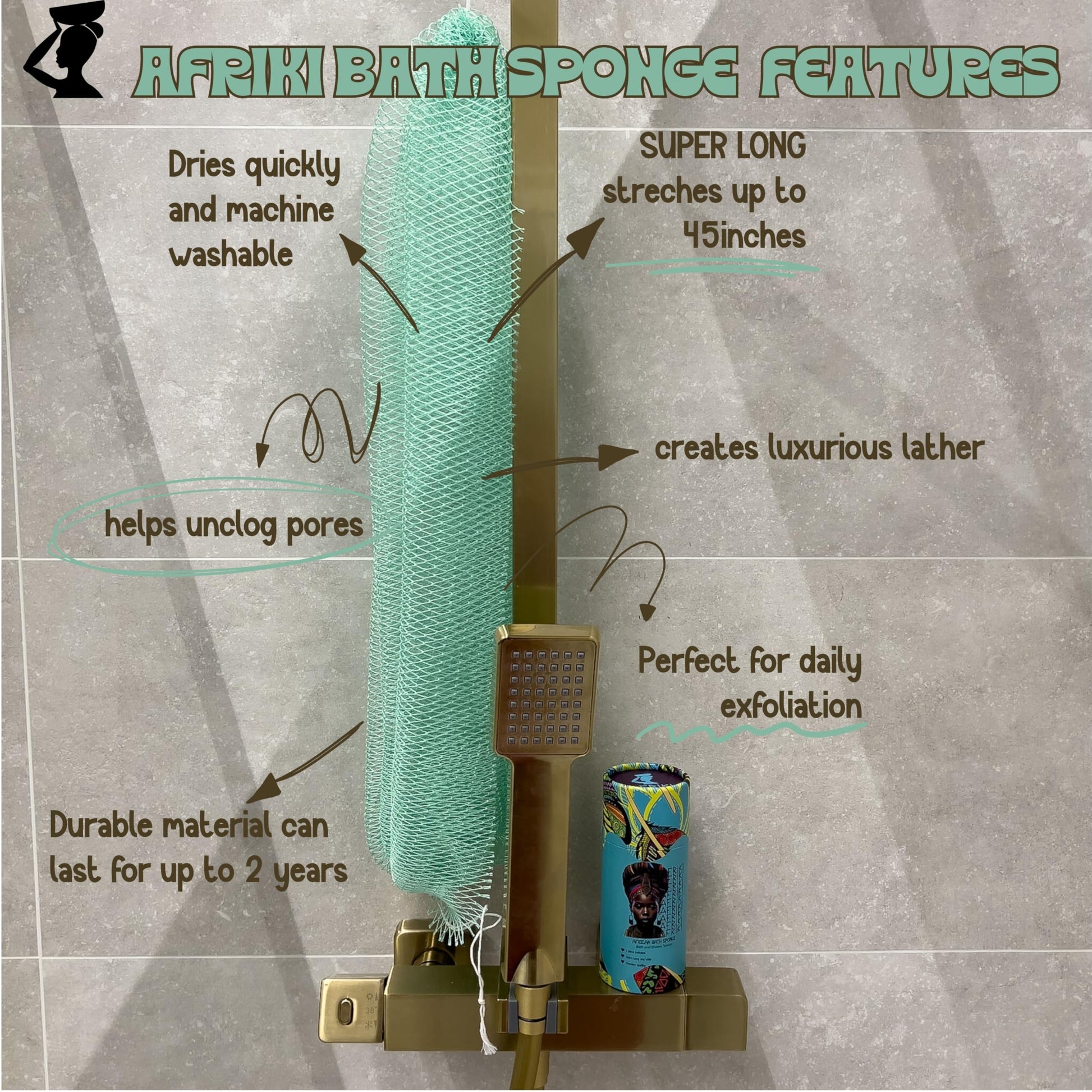 - 100% AFRICAN NET SPONGE : Step into the heart of Africa's skincare ritual with AFRIKI - African net sponge. Crafted from safe and skin-friendly and premium polyester, this body sponge for shower will transform your daily routine into an invigorating exfoliation experience. And here's the best part, its machine washable!