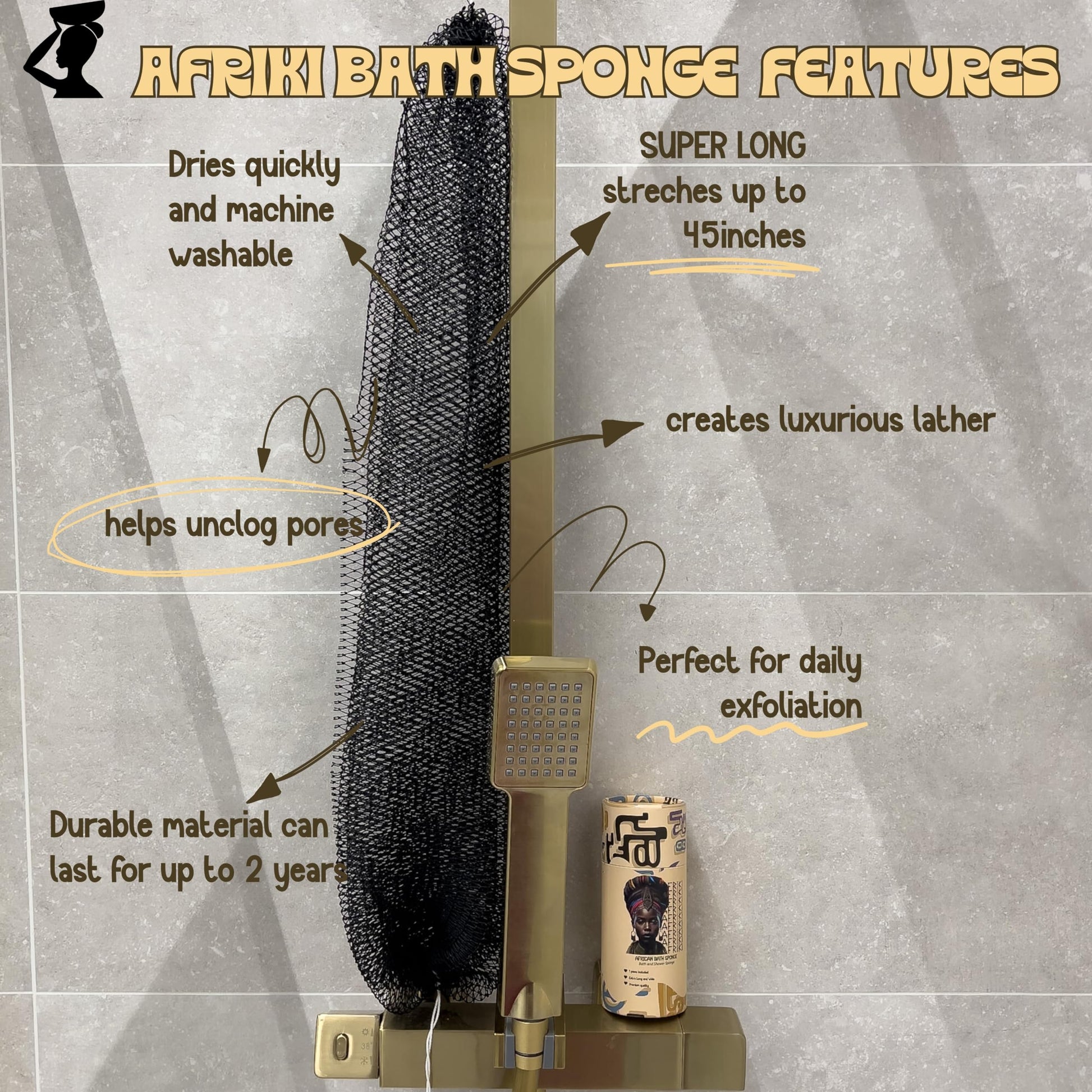 AFRIKI African Net Sponge, Authentic African Exfoliating Sponge, Black Owned, Back Scrubber, 45 inch Long for Normal to Sensitive Skin, for Daily use, Original Collection